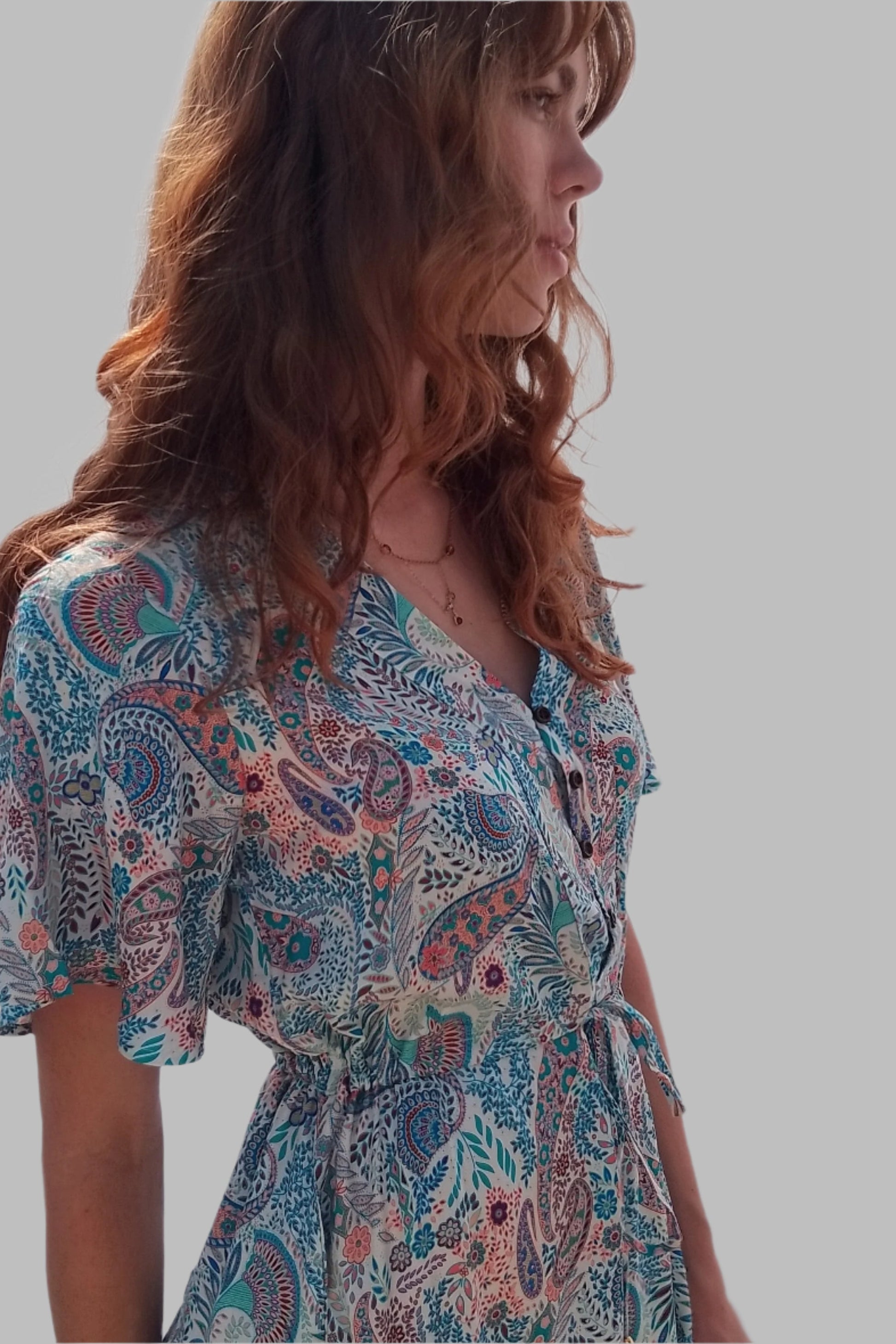Made from 100% rayon with a drawstring waist, it is easy to wear with a flattering silhouette.